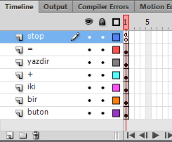 -Tasarımımızı oluşturduktan sonra yeni bir katman açıp bu katmanın üzerine gelip sağ tık>Actions ” stop(); ” kodunu eklemeyi unutmuyoruz.