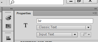 –Flash programında Textbox ekleme işlemi genellikle zorlanılan adımlardan biridir.Ancak oldukça basittir.Yazı yazıyormuş gibi yani “Text Tool” aracını kullanarak textbox benzeri bir kutu çiziniz.Sağ üst köşede bulunan Properties sekmesinde “Static Text” olan alanı “Input Text” olarak değiştiriyoruz.Böylece text alanını textbox ‘a çevirmiş olduk.Name alanları da bizim için çok önemli olduğundan kesinlikle textbox namelerini veriniz.(aşağıdaki resimde “bir” yazan kısım”)