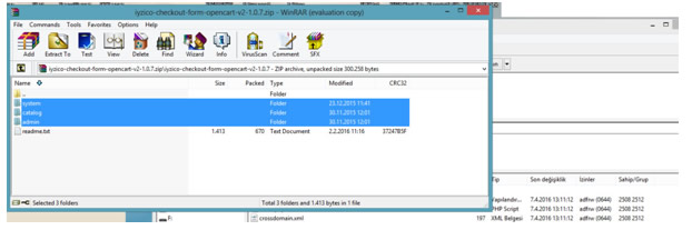 İndirdiğimiz İyzico Sanal Pos modülünü Opencart‘ın yüklü olduğu ana dizine atıyoruz.